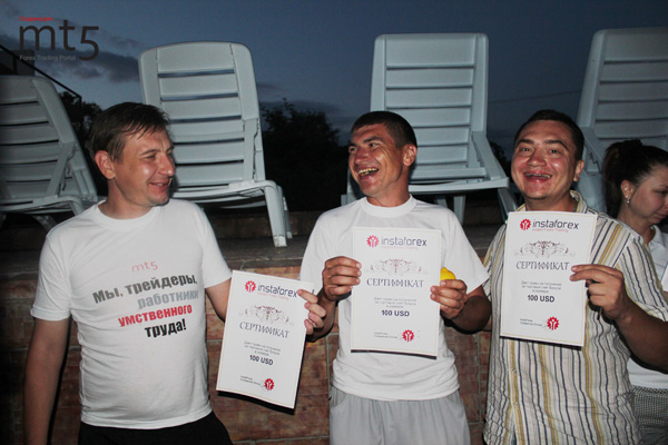 Конкурс от InstaForex был еще одним развлечением, принятым участниками слёта с большим энтузиазмом. Замечу, вот здесь-то прозвучали оба ника нашей форумной администрации: МТ5-Администратора и Helios`а. Админы, мы о вас помнили! Надеюсь, когда-нибудь и Вы прибудете на Слёт.